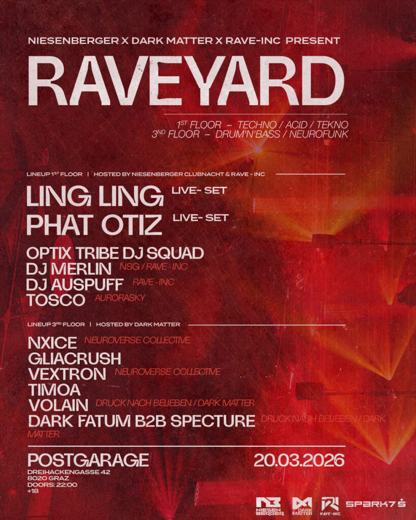 Niesenberger x Dark Matter x Rave-inc present Ling Ling, Phat Otiz RAVEYARD